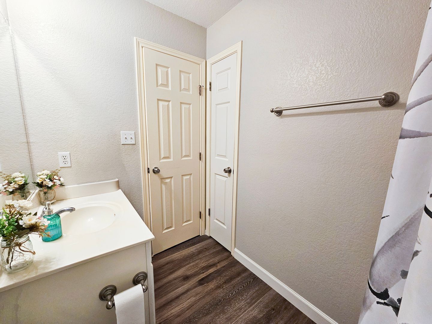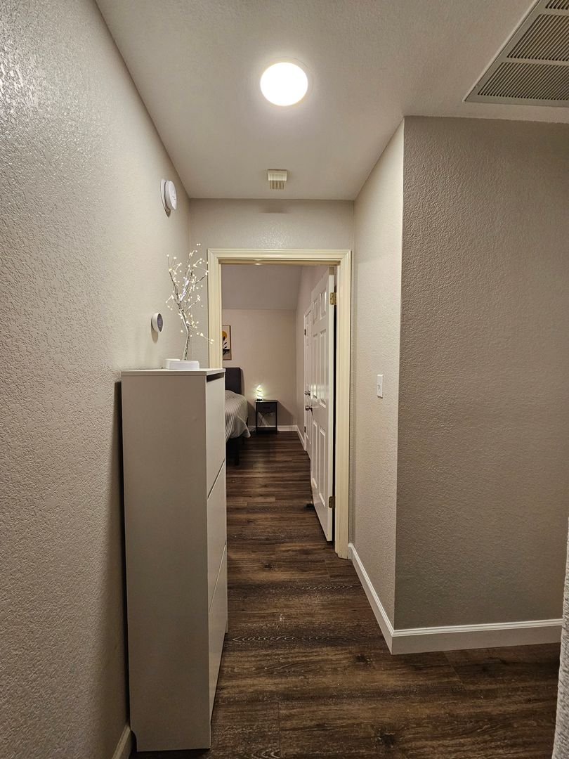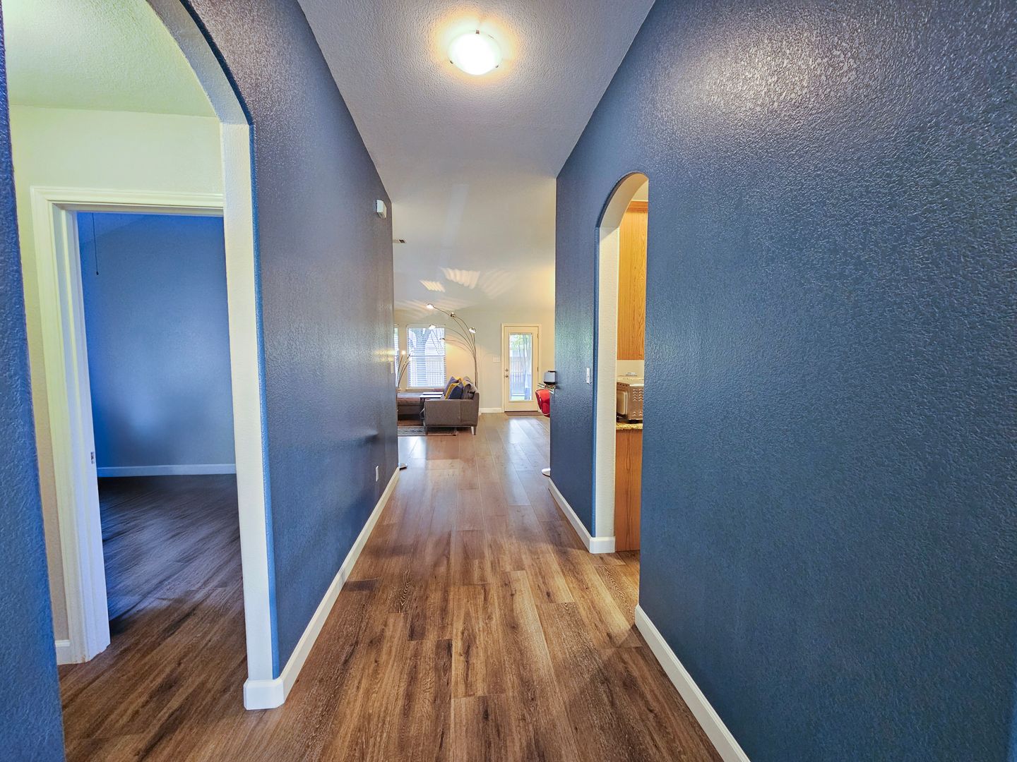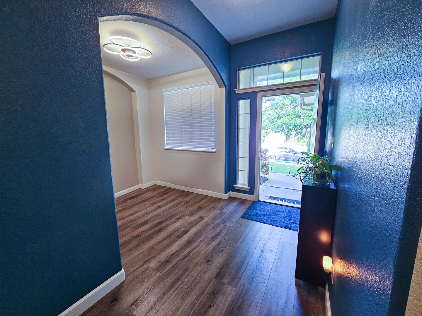 Modern upgrades throughout the home include vinyl plank flooring, updated light fixtures, and interior paint. The fully remodeled primary bathroom adds a touch of luxury, while the new washer and dryer offer everyday convenience. Smart home features include a Google Nest Smart Thermostat, a Google Nest Doorbell, and a front-facing security camera. The backyard is fenced for privacy, and the garage is equipped with a 50-amp NEMA 14-50 outlet for EV fast charging. Both bathrooms feature bidets.
