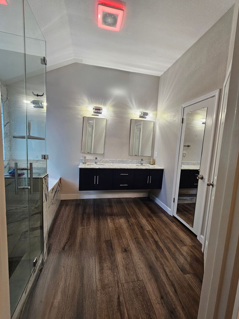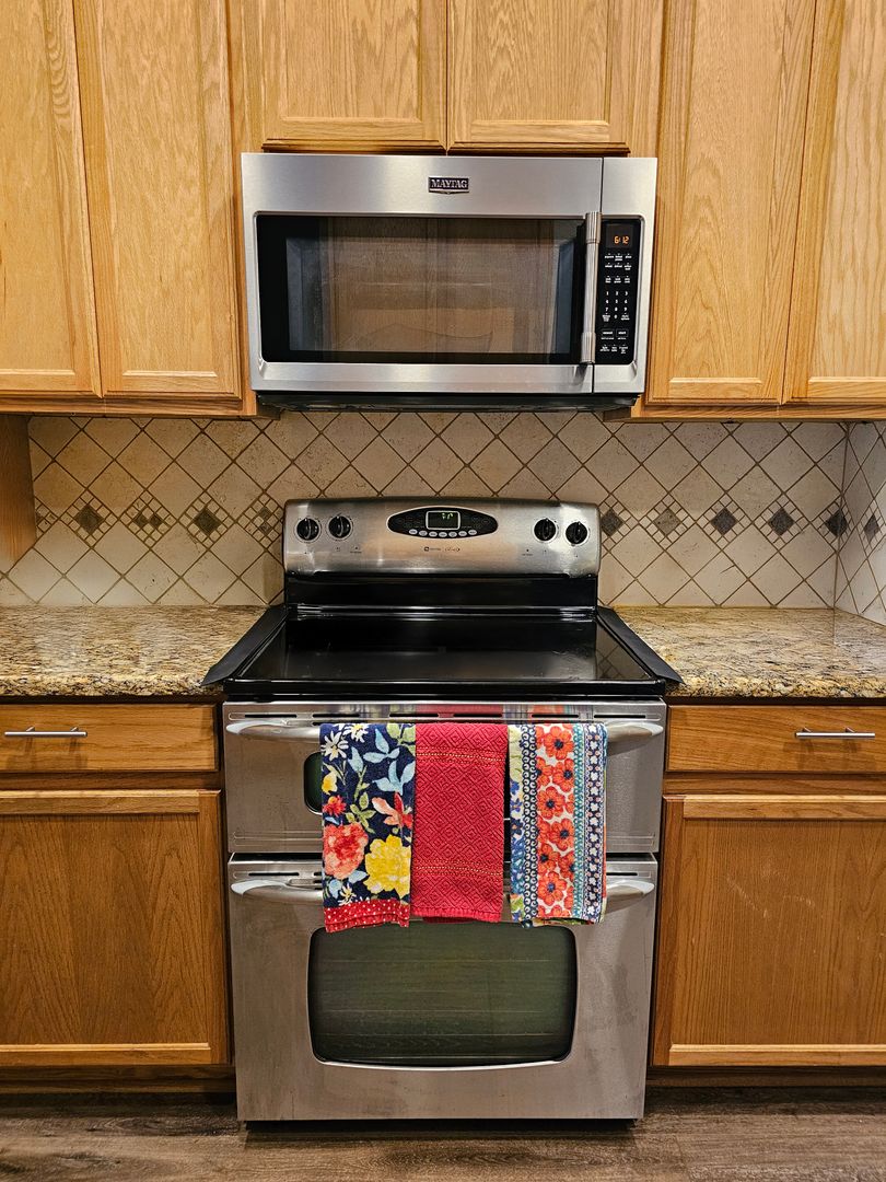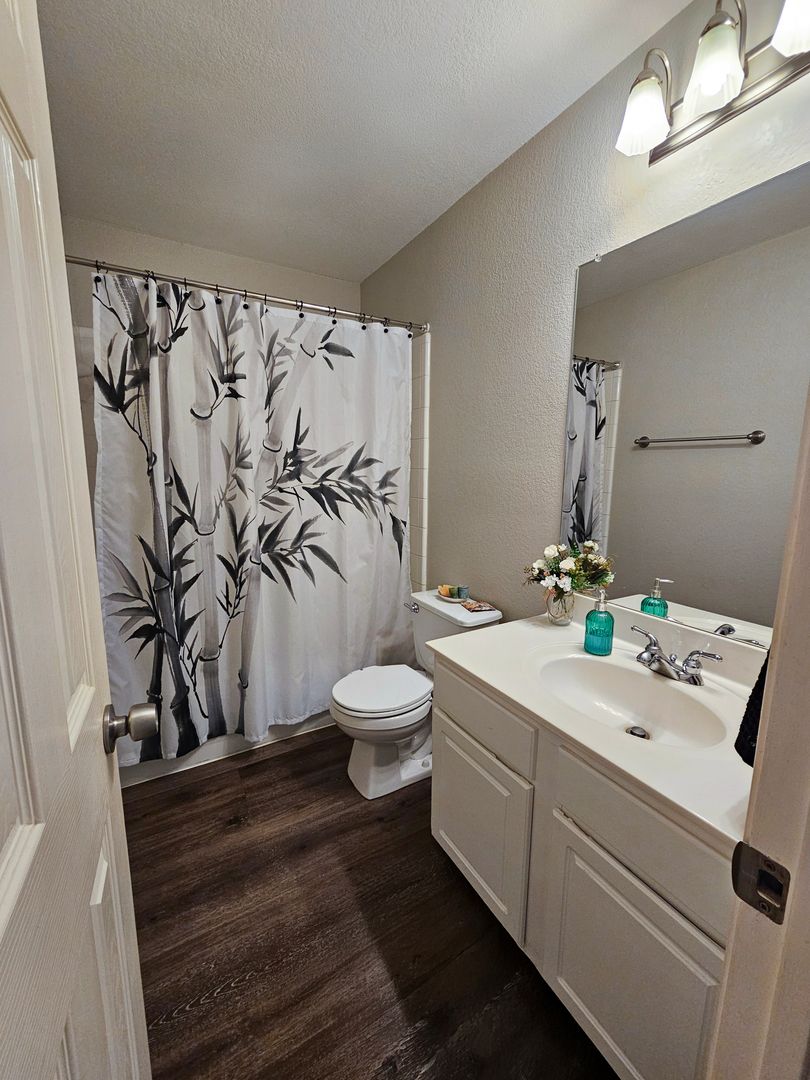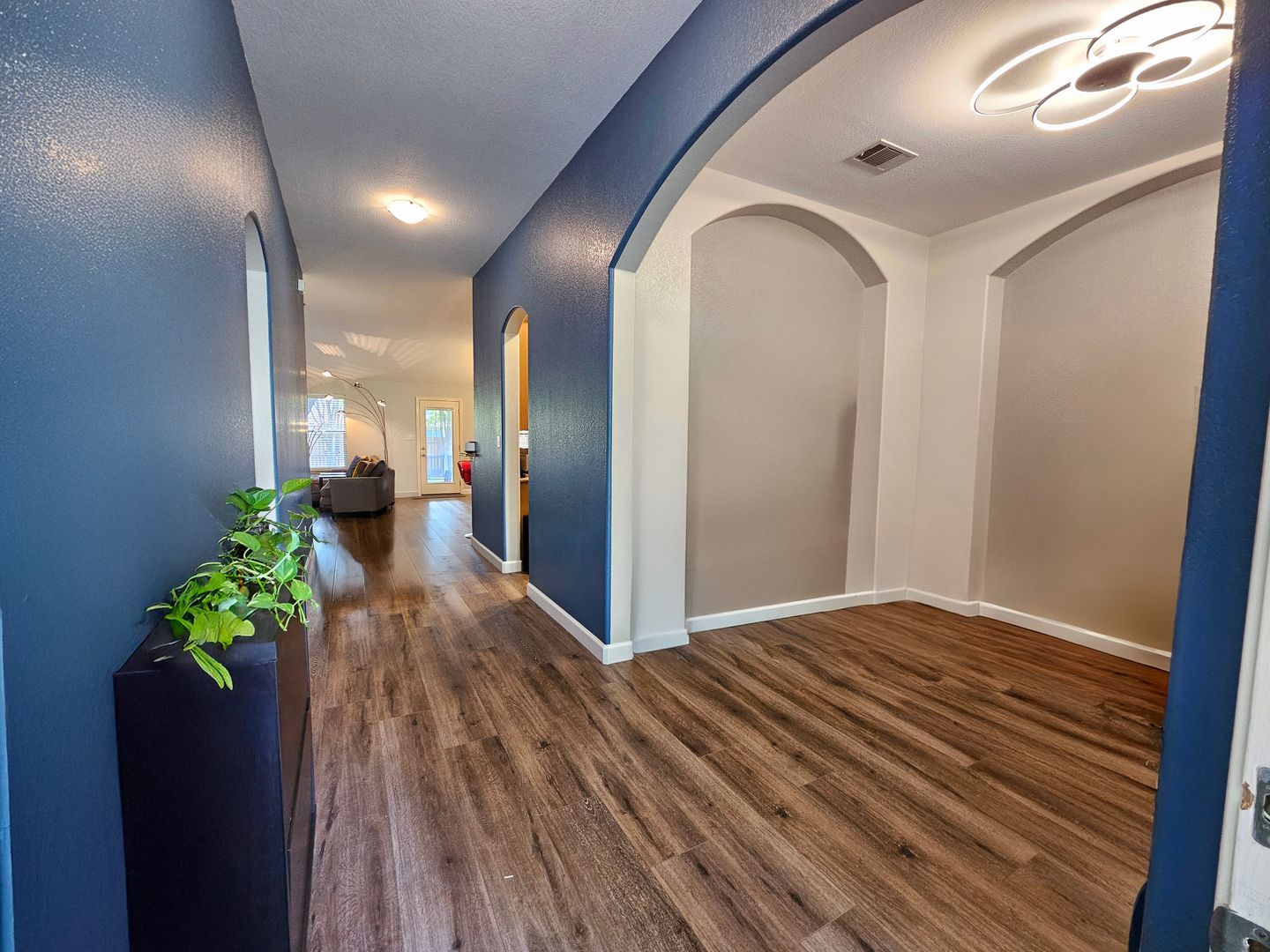 Modern upgrades throughout the home include vinyl plank flooring, updated light fixtures, and interior paint. The fully remodeled primary bathroom adds a touch of luxury, while the new washer and dryer offer everyday convenience. Smart home features include a Google Nest Smart Thermostat, a Google Nest Doorbell, and a front-facing security camera. The backyard is fenced for privacy, and the garage is equipped with a 50-amp NEMA 14-50 outlet for EV fast charging. Both bathrooms feature bidets.