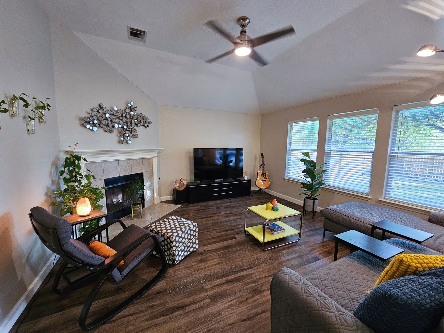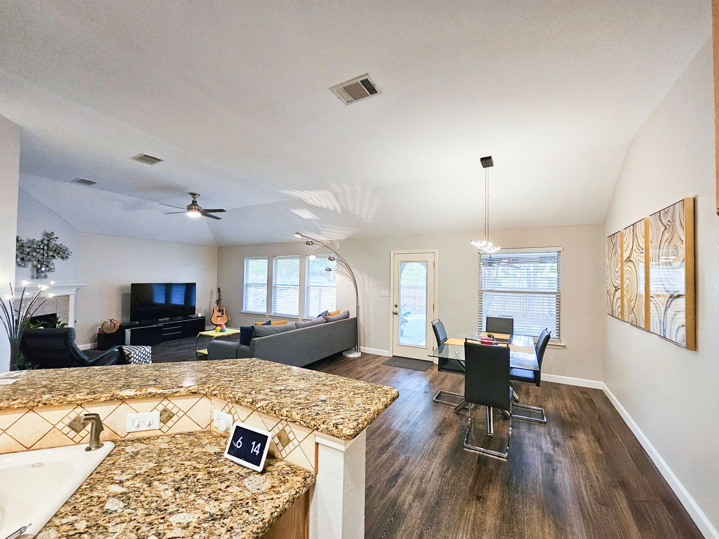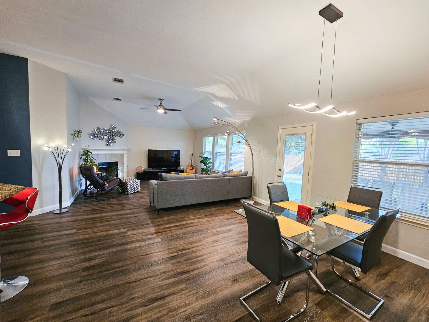 Spacious and thoughtfully designed, this 3-bedroom, 2-bath home offers comfort and convenience at every turn. The split floor plan provides added privacy, with the primary suite tucked away from the other bedrooms. Enjoy the airy, open-concept layout with soaring ceilings, a generous two-car garage that fits large vehicles with ease, and a sprawling backyard complete with a new privacy fence perfect for entertaining, gardening, or simply relaxing.